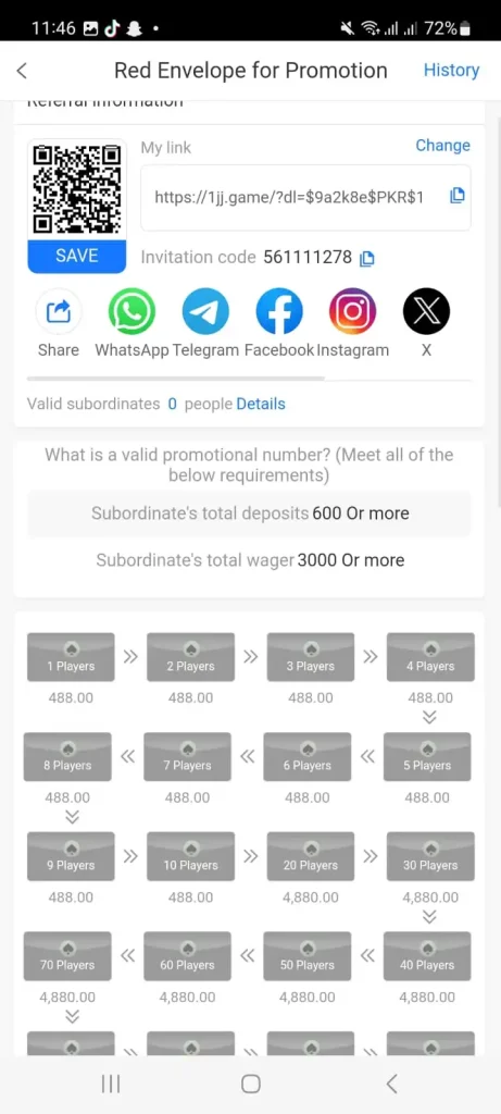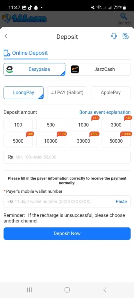 1JJ Game has become very popular in Pakistan because it allows players to enjoy fun games while earning real money. One of the biggest reasons for its success is that users can place bets on different games and win cash rewards. The referral program also helps people earn money without even investing, making it an attractive option for many. You may also check P9999 and X666 Game.